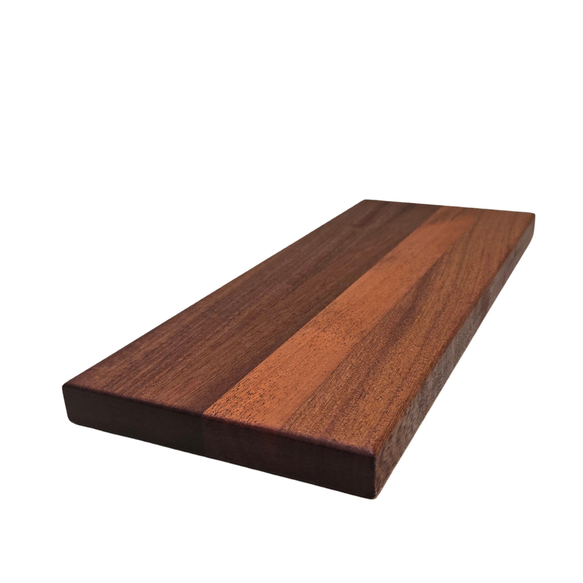 Experience the elegance and durability of our handcrafted solid African Mahogany cutting boards. Expertly designed for culinary enthusiasts, these boards provide a perfect blend of form and function. Whether you're serving artisanal charcuterie or preparing everyday meals, our premium mahogany boards offer a naturally beautiful surface that protects your knives and enhances kitchen aesthetics.